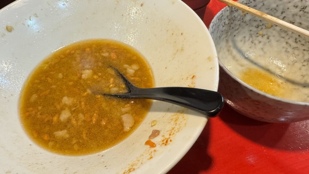 ▲最後に、コッコマンへ麺をディップして味変。コッコマンは生卵2個+たまねぎ+ショウガですが、これが生卵のマイルドさとたまねぎのシャクシャク感、ショウガの辛さがプラスされてめちゃ旨。