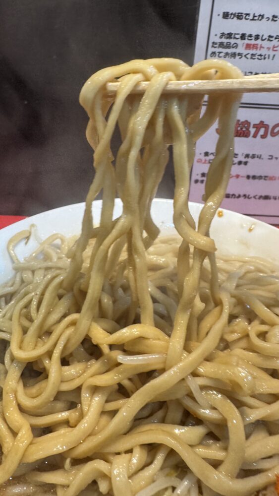 ▲麺はワシワシ食感。良い感じに微乳化スープが絡んで旨い。