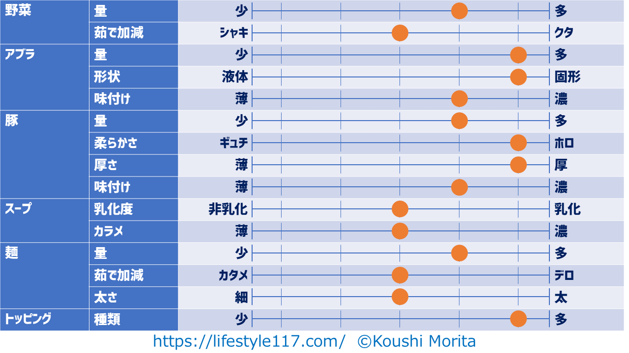 私は原則ニンニクを入れない(妻に怒られるので)ため、項目からニンニクは除外しています。
