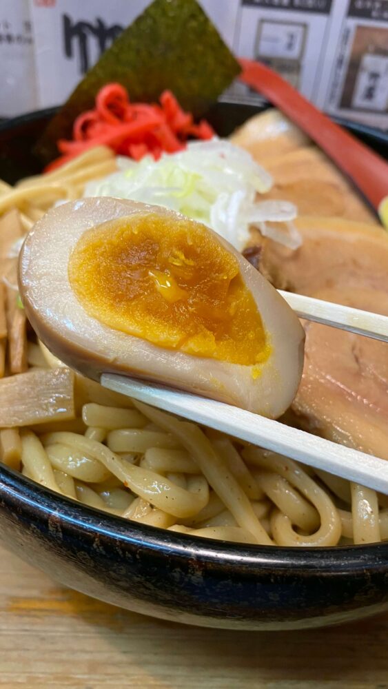 ▲味が染みた味付け玉子。ちょうど良い半熟加減で旨し。