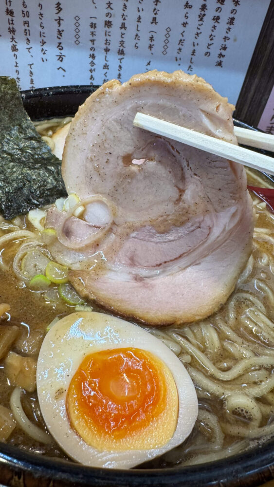 ▲相変わらずの大判で柔らかなチャーシュー。スープに浸して食べると旨し。