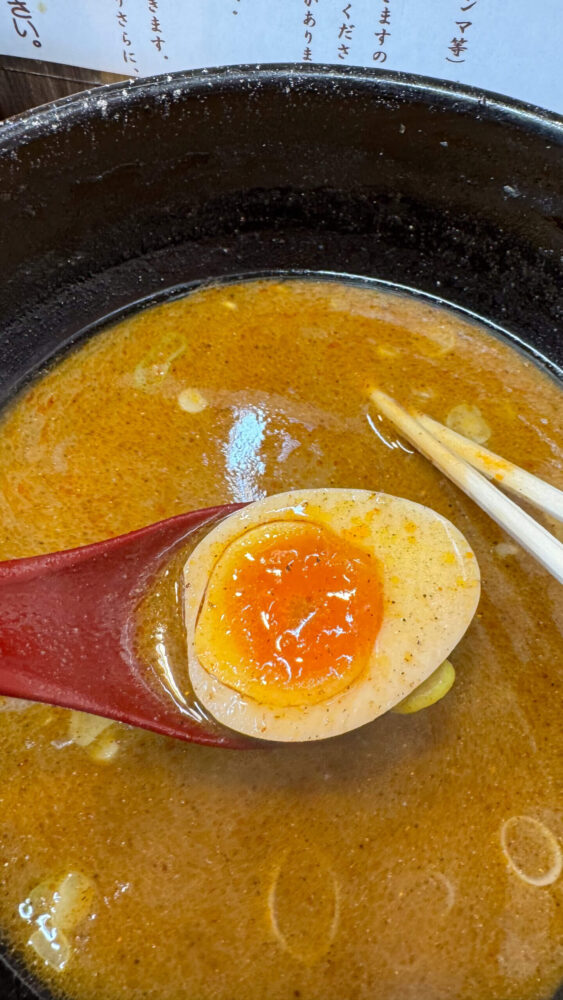 ▲ラストはデザート替わりに味玉をパクり。黄身が半熟で美味。