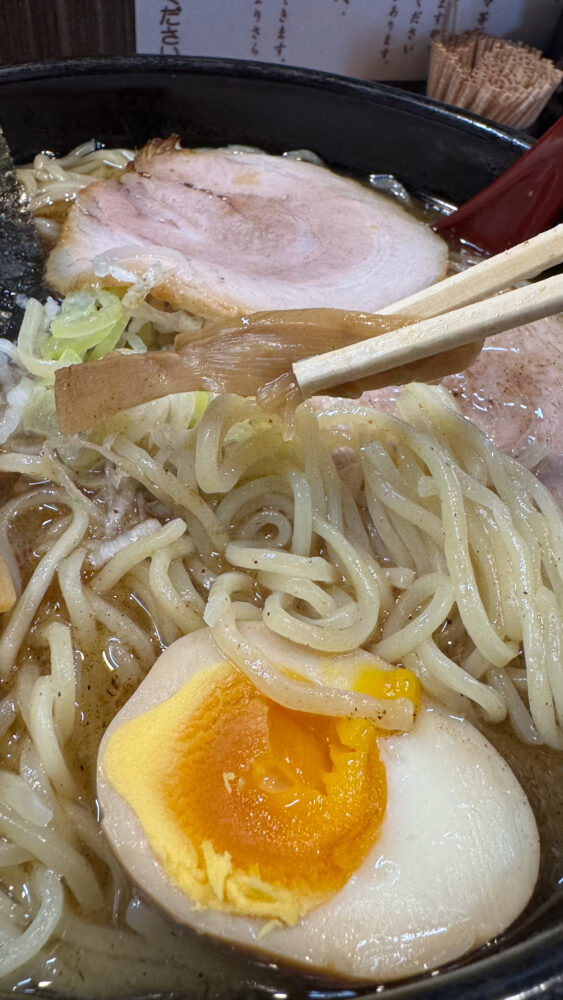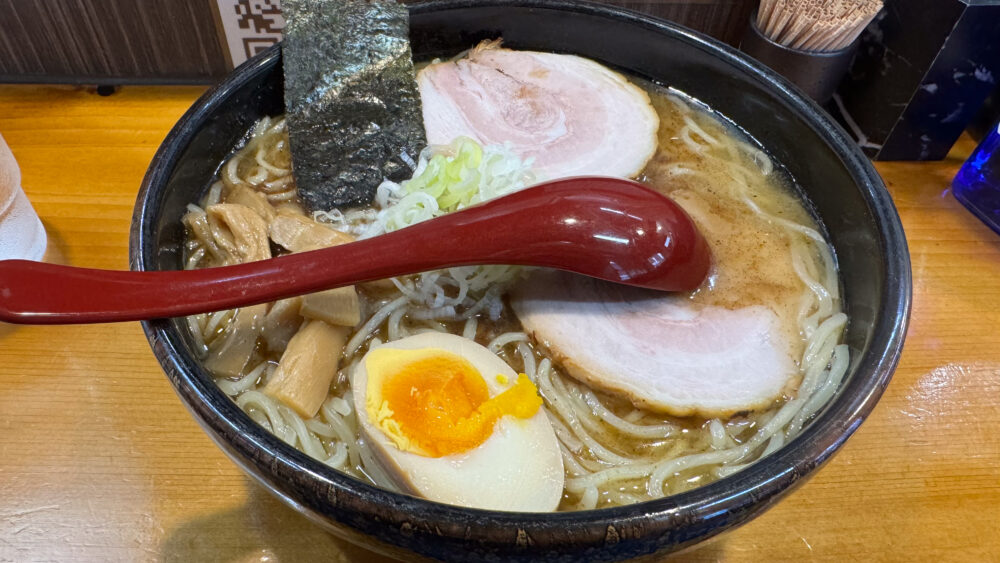 竹屋のらあめんの塩は、魚介の旨味と塩味が効いたスープがモチプリな麺に絡んで美味しかったです!