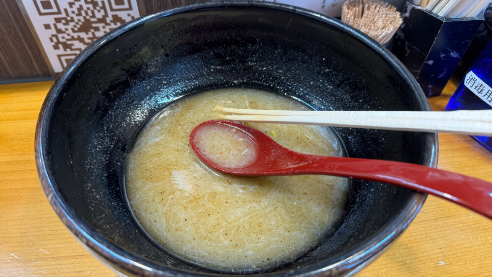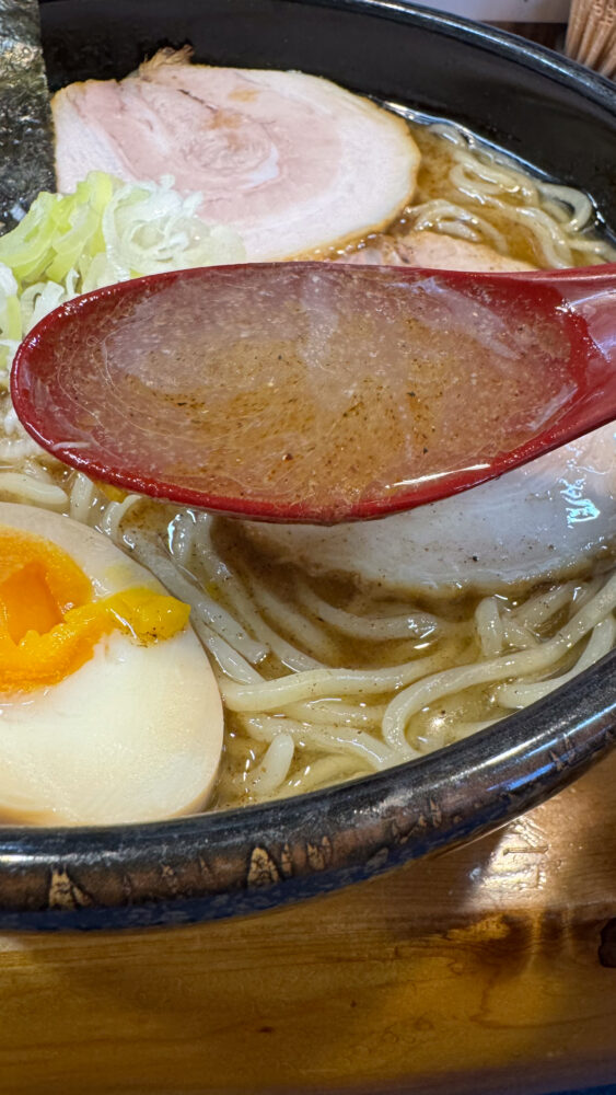 ▲スープは魚介の旨味と塩がビシッと効いていて、意外とパンチ強め。濃い味が好きな私好み。