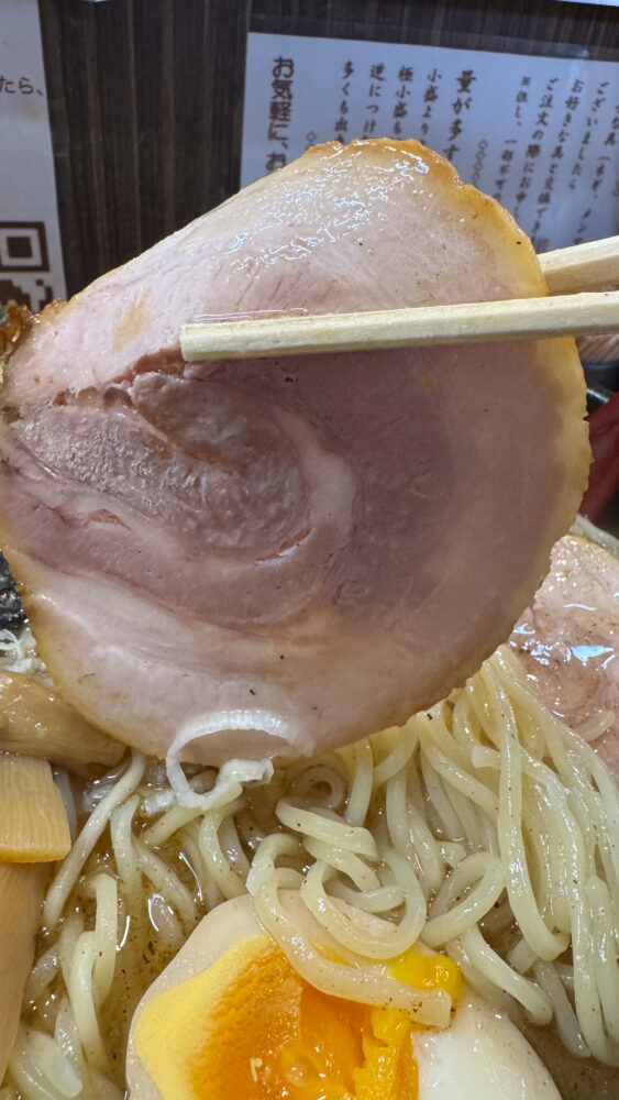 ▲大判で柔らかいチャーシュー。スープに浸して食べると旨し。