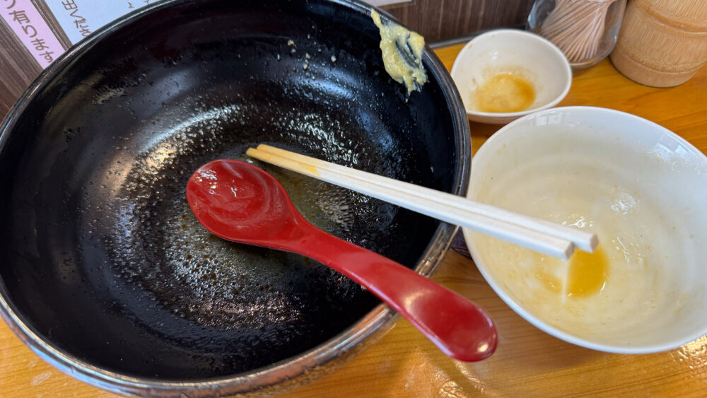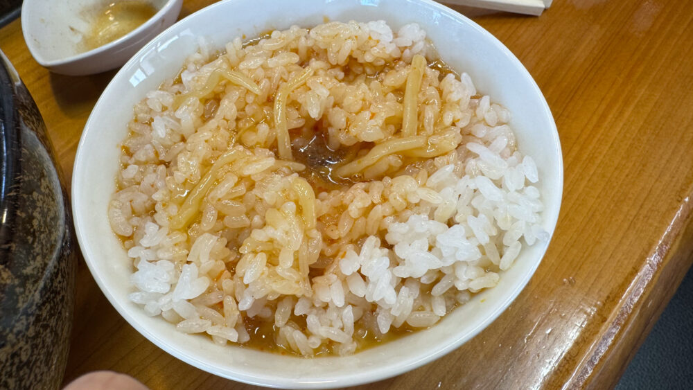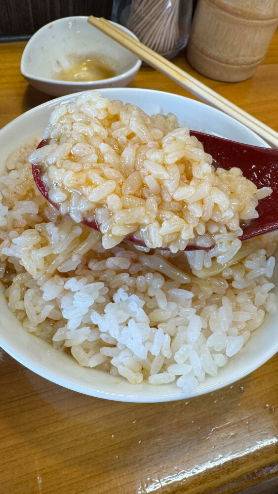 ▲麺を食べ終えたら、ライスへ残った玉子とタレをかけてTKGを楽しみます。