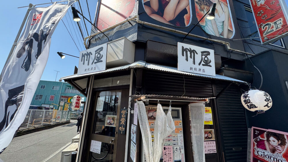 麺が美味しく、ボリュームたっぷりなつけ麺やラーメンを提供する「竹屋 新秋津店」。