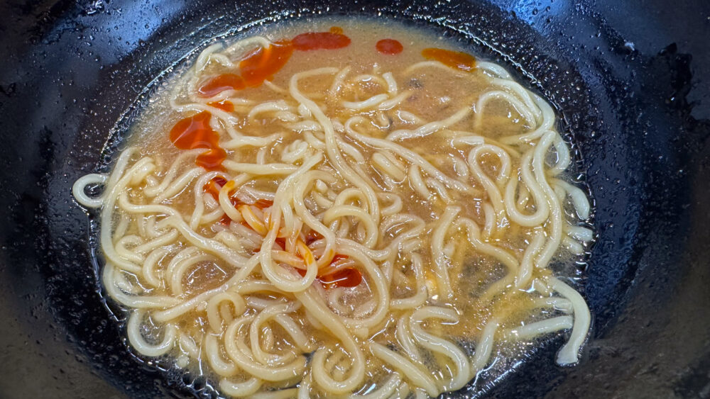 ▲終盤は、卓上のラー油でピリ辛に味変。ちょっぴりジャンクさが出て良き。
