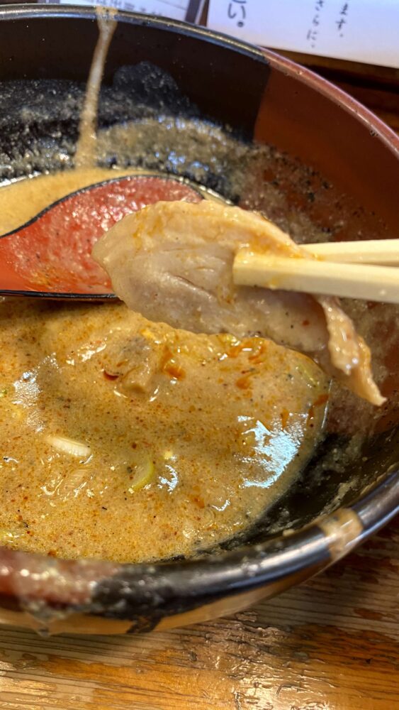 まず、つけ汁はドロッとしていて粘度が高めです。