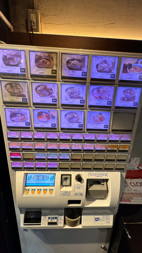 ▲主要なメニューは写真付きなので選びやすい。このお店は食券機付近に麺量の記載なしです。