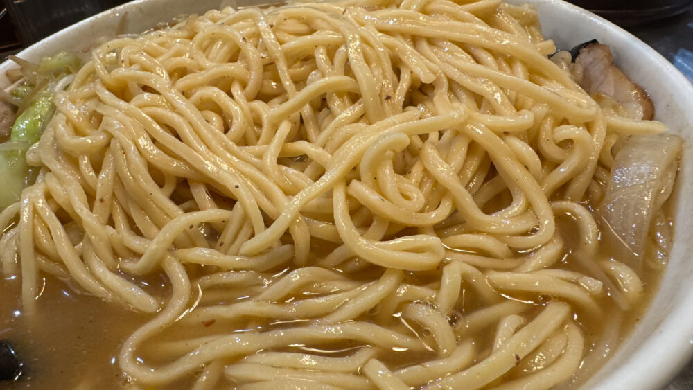 ▲麺は中細ストレートでつけ麺と同じタイプっぽいですね。モチっとしていてスープの持ち上げも良き。