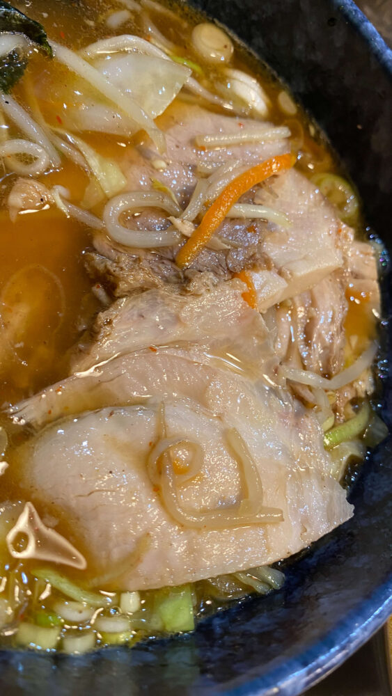 ▲野菜の下に隠れていますが、チャーシューは4~5枚あるのが嬉しすぎますね。