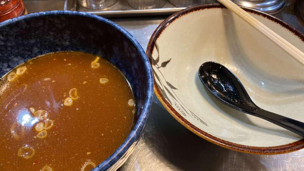 ▲つけ汁は南池袋店より濃いめで甘め。