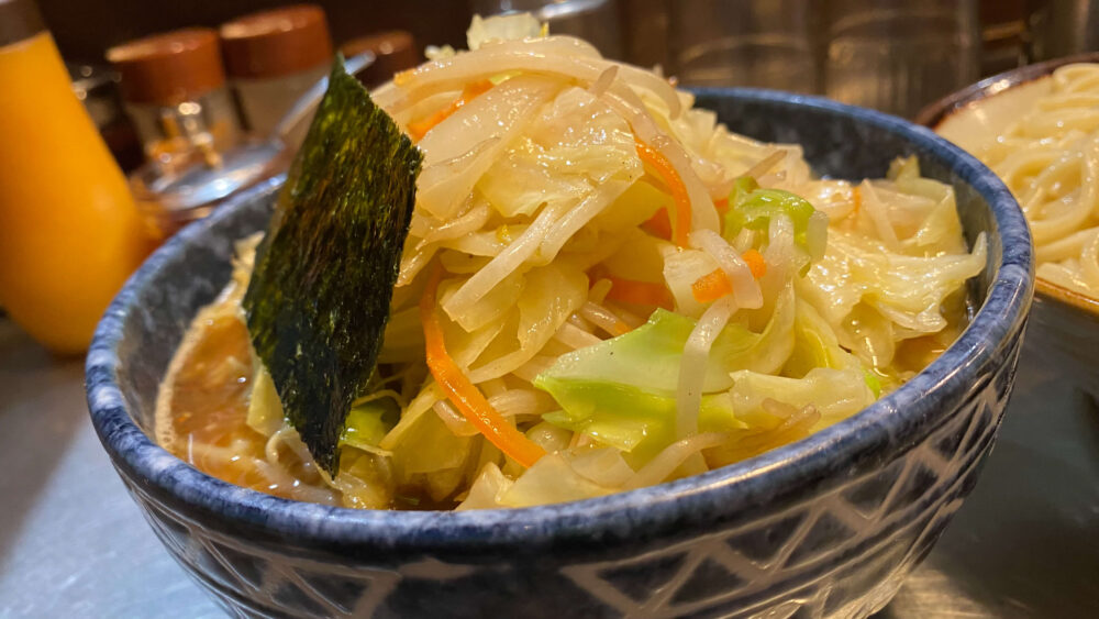 つけ汁に「これでもか!」と山盛りになっている野菜がインパクト大!