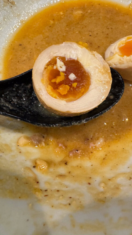▲デザート代わりにラストは味玉で〆。半熟の黄身が美味。