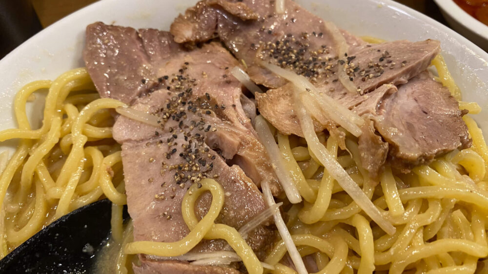 ▲残り2枚のチャーシューは卓上の胡椒を使い胡椒豚に。刺激が増してめちゃ旨。