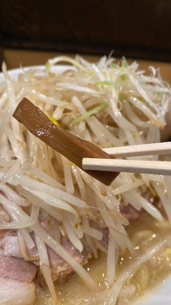 ▲メンマはしっかりめな味付け。これ単品でライスのおかずになるやつ。