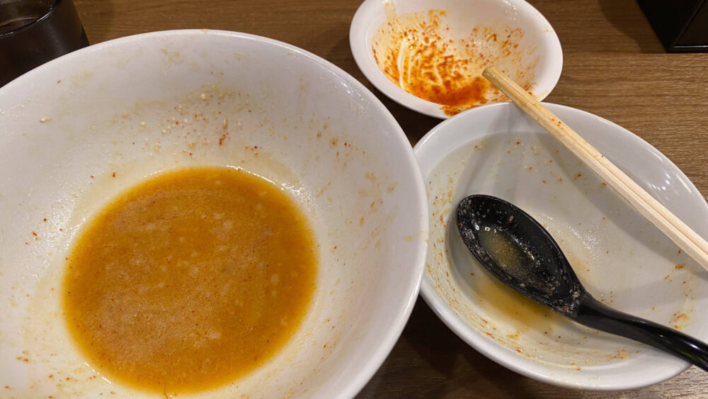 そのまま食べても良し、タレに麺をディップしても良し、タレをスープにかけて終盤に辛味噌にしても良し。