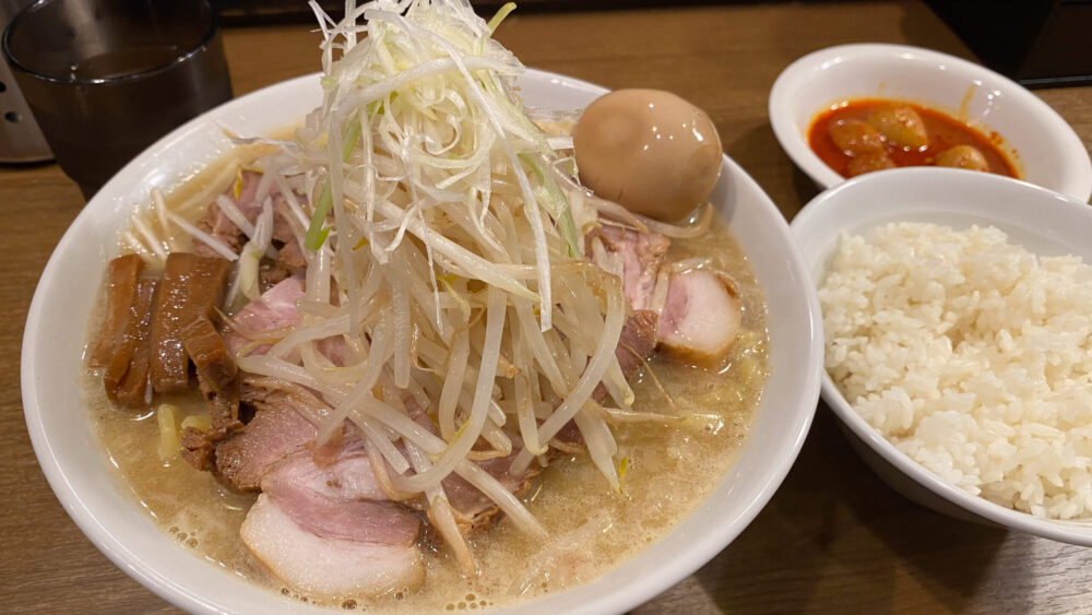 「味玉チャーシュー味噌ラーメン+麺特盛り+ライス+辛子たまご」を実食!