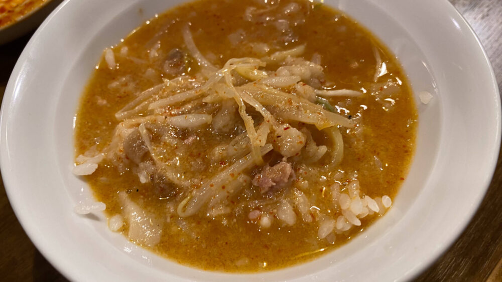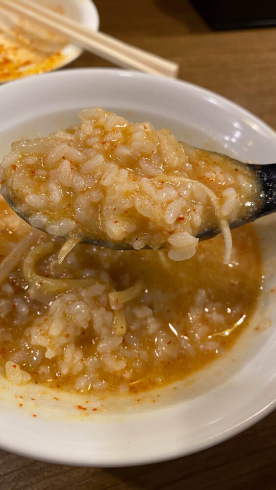 ▲辛味噌の雑炊は最高ですね!腹パンでもスルッと入ります。