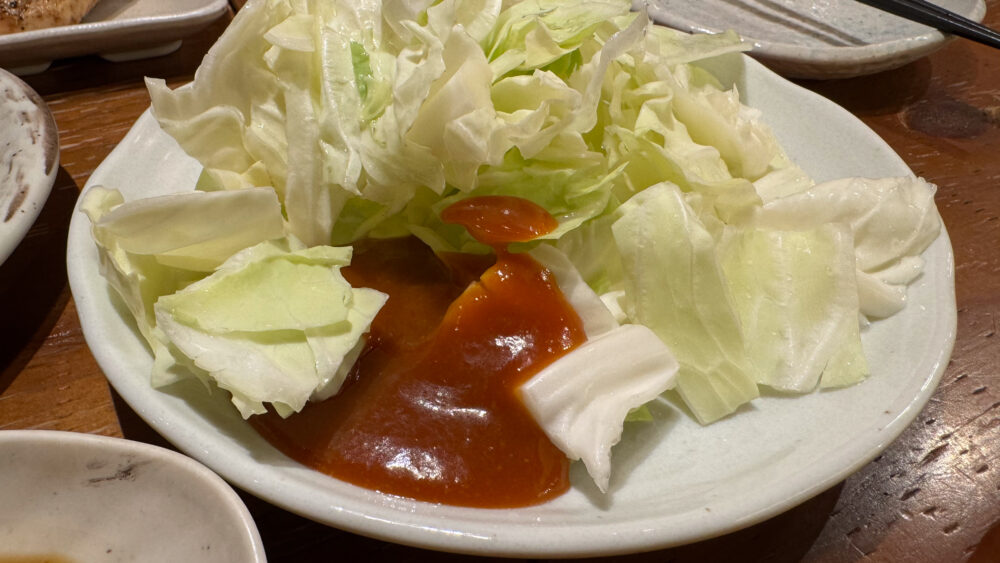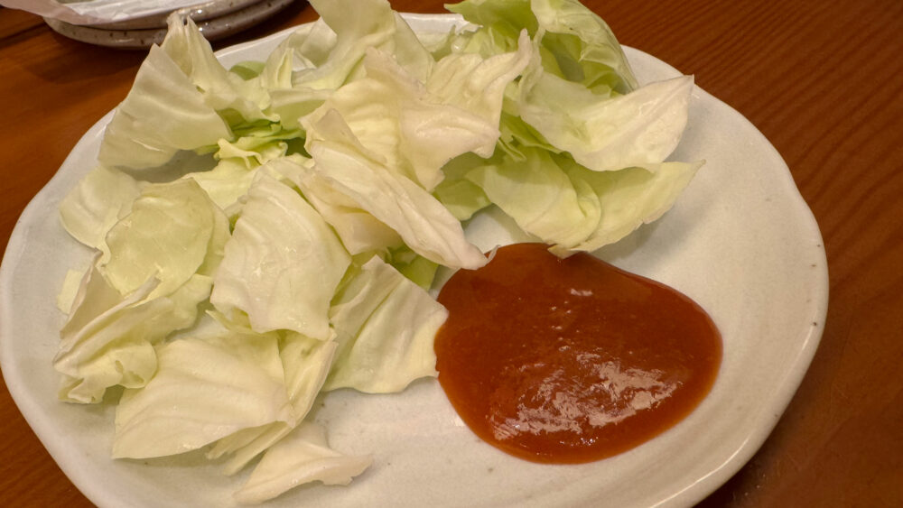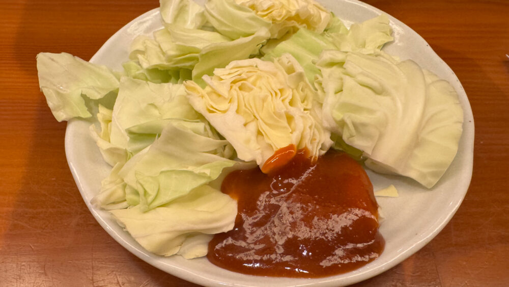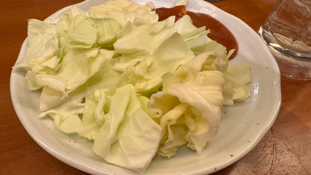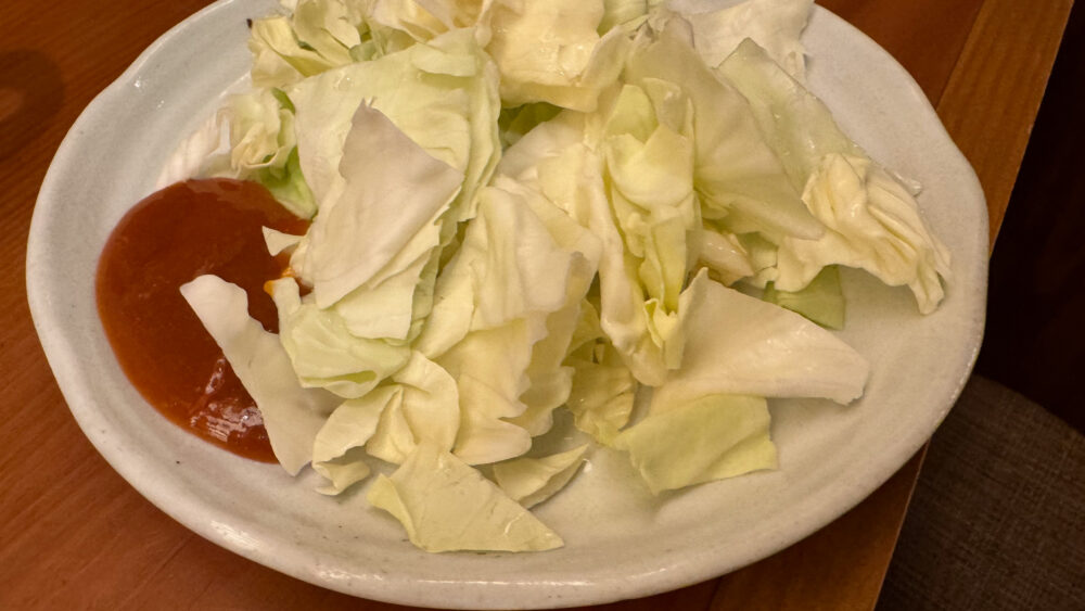 ▲お通しのキャベツ。たぶん1皿目は写真を撮り忘れてお替りしたやつ。