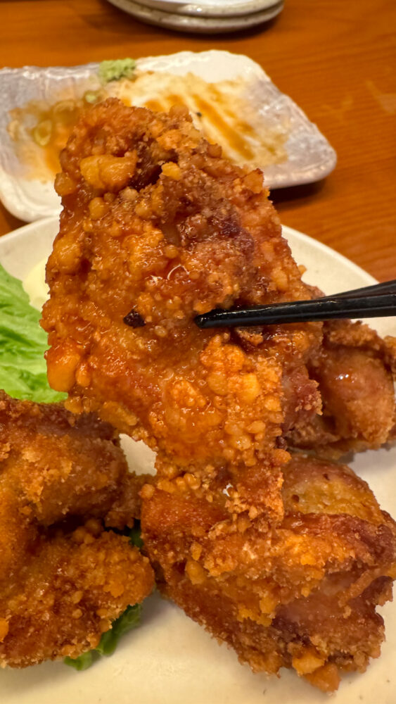 ▲唐揚げは相変わらずのカリジュワ食感。ニンニクも効いてめちゃ旨。