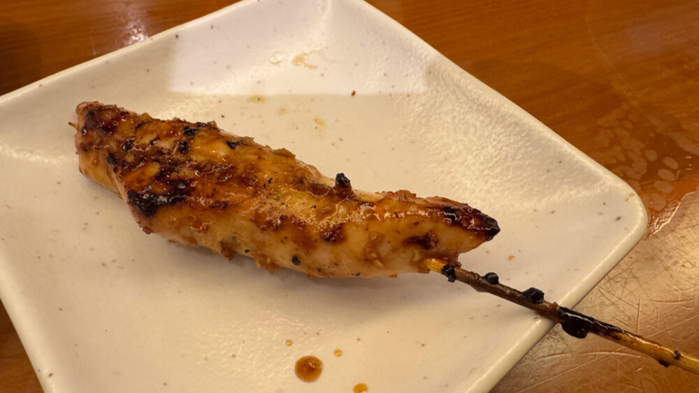 ▲ささみ串(ニンニク)。ニンニク風味のタレの香りがたまりません。