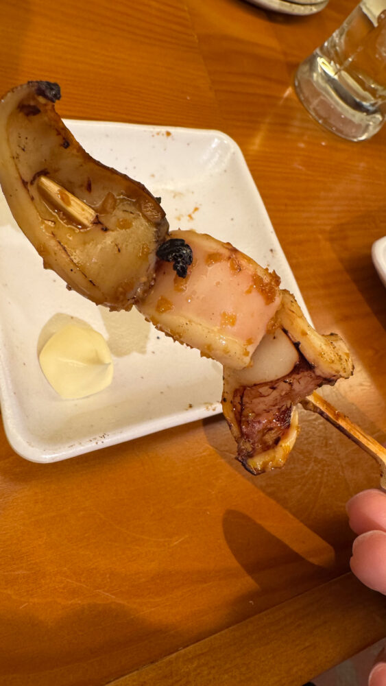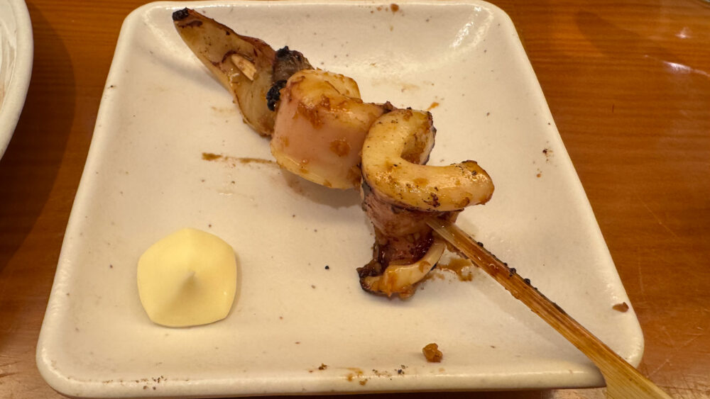 ▲イカが柔らかくて美味。マヨを付けて食べるのも美味しい。この日はこれで締め。