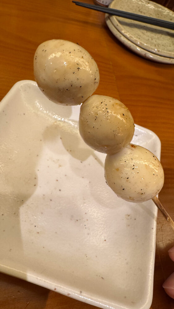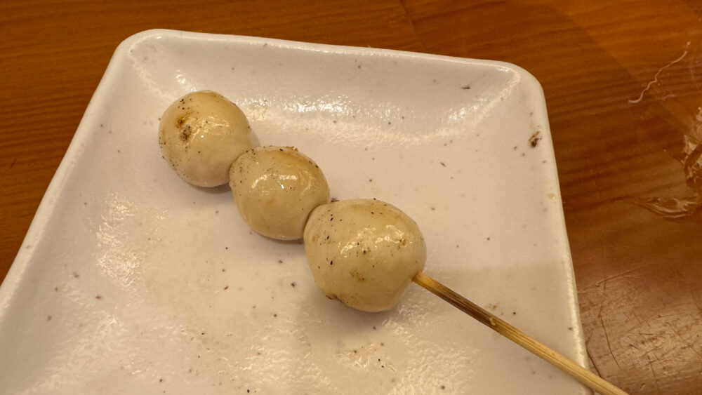 ▲うずらの卵串(塩)。焼き加減が最高で美味しそう。