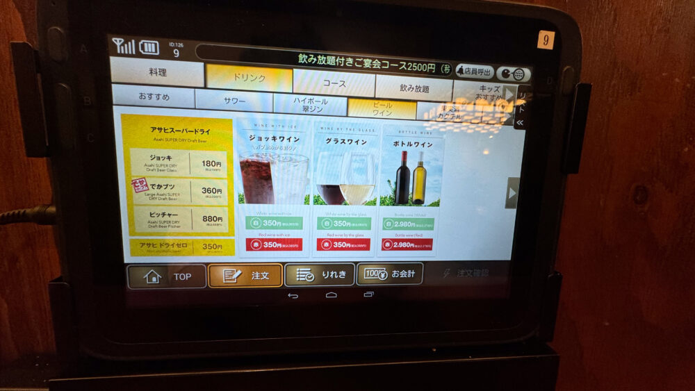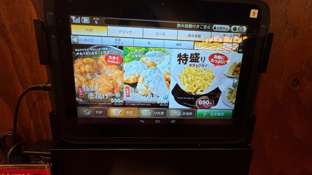 店員さんに席を案内してもらったら、タッチパネルで注文します。