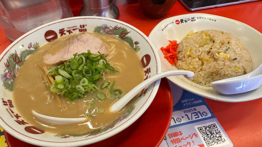 天下一品のチャーハン定食は、中毒性の高いこってりラーメンとパラっと美味しい半チャーハンを両方楽しめてお得ですね!