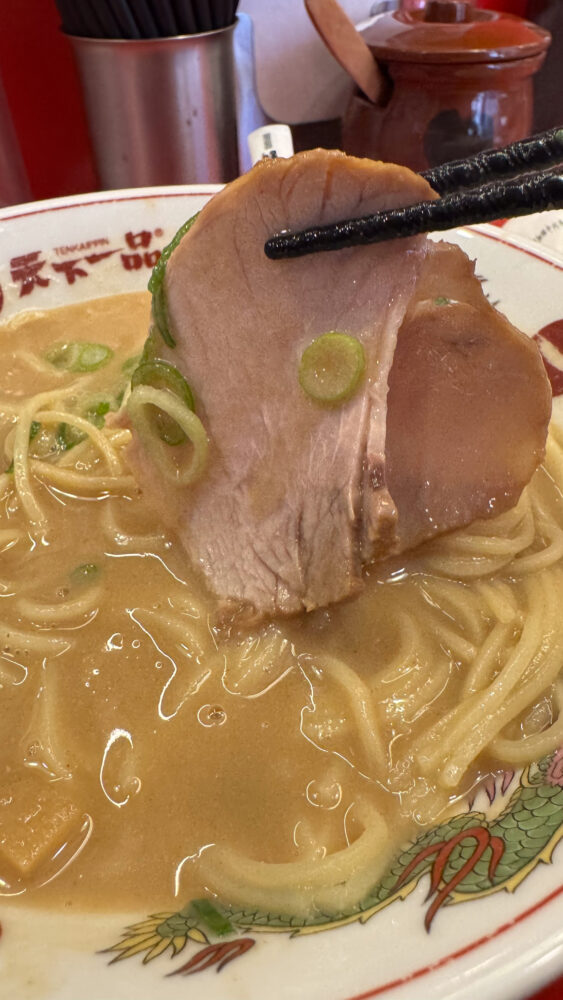 ▲チャーシューは脂身少なめタイプ。こってりスープと合わせると美味。