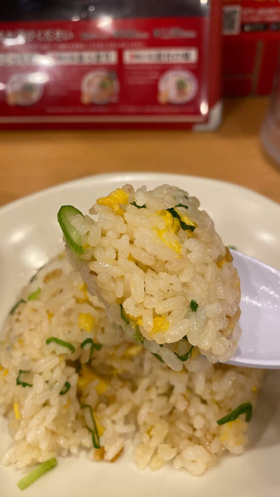 ▲チャーハンはパラパラで口の中でほどけます。味付けはそこまで濃くなく、こってりスープと合いますね。