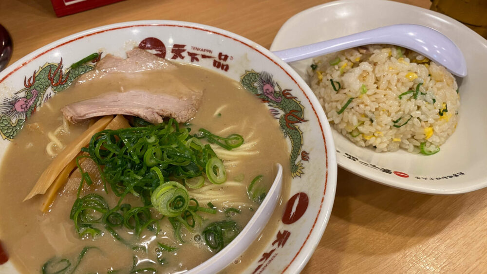 天一の代名詞こってりラーメンときれいに盛られたチャーハンでボリュームたっぷり!