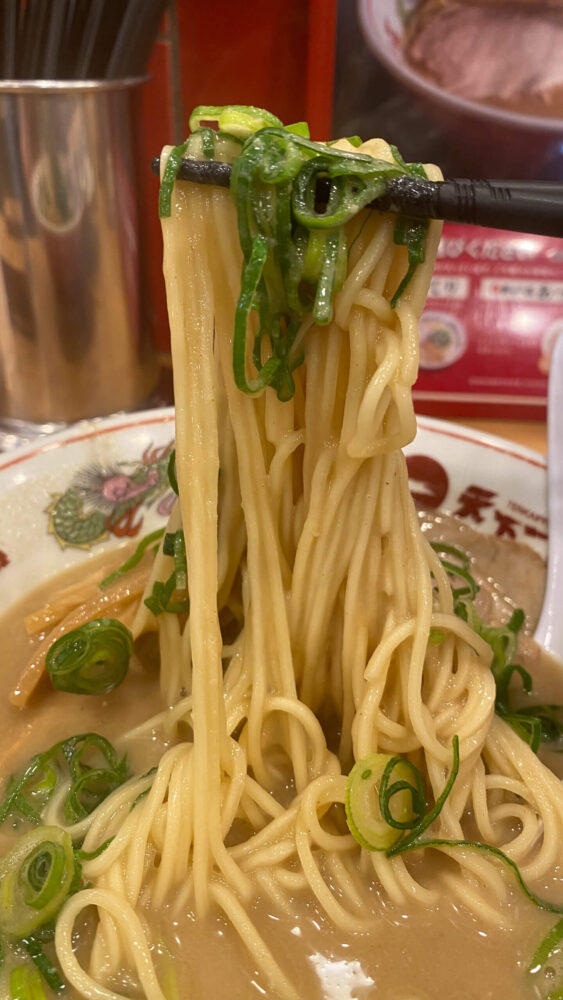 ▲細めのストレート麺がこってりスープを持ち上げまくります。美味。