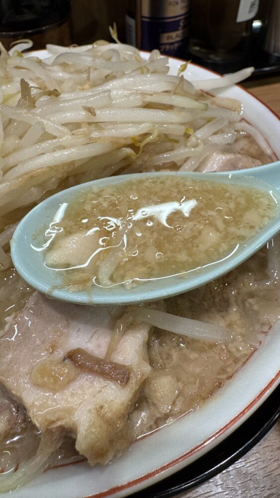 THE魚郎の土佐しょうが塩味は、二郎系には珍しい生姜主体の塩スープですっきりした味わいで美味しかったです!