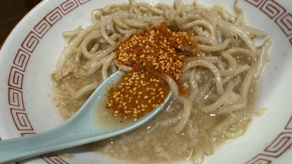 ▲隅っこに温存していた生姜を全開にして味変。生姜の辛さと清涼感がやみつきになります。