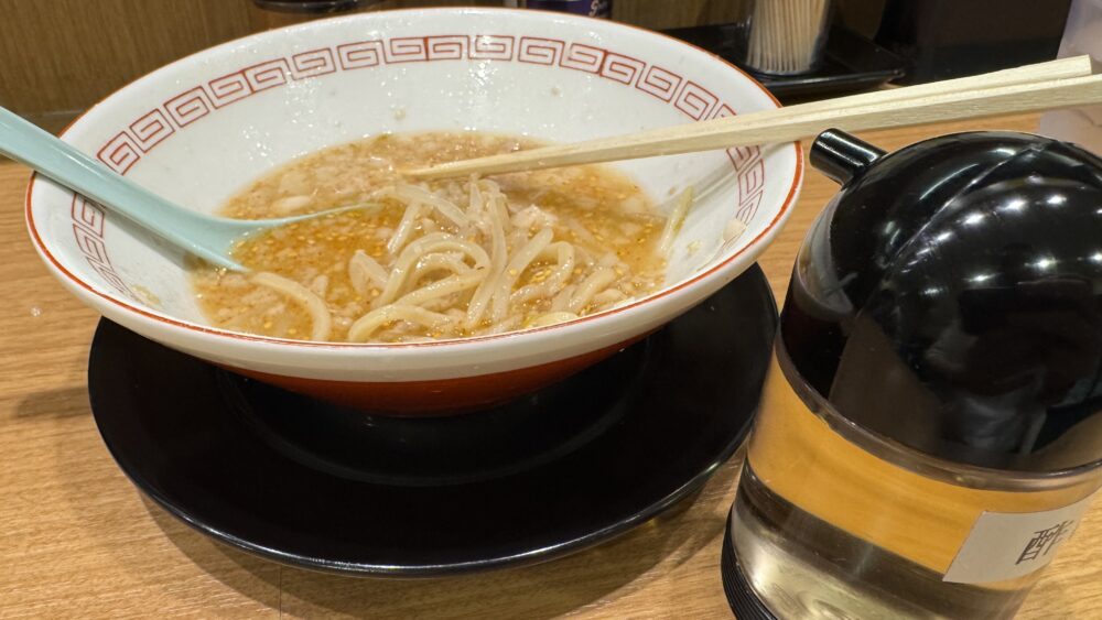 ▲終盤は卓上のお酢で味変。生姜とは別ベクトルの清涼感でさっぱり食べることができました。