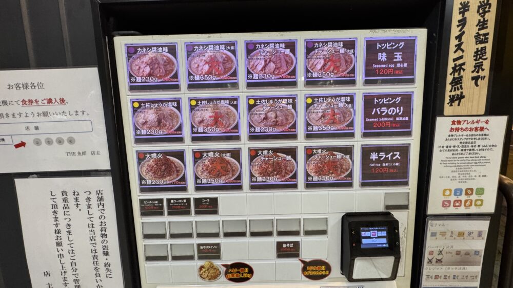 ▲外の券売機で注文します。複数のキャッシュレス決済対応なのが嬉しいです。
