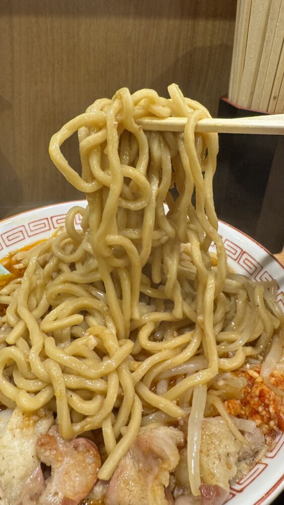 ▲麺は、やや細めのコシ強め。ピリ辛な醤油スープをまとって旨い。