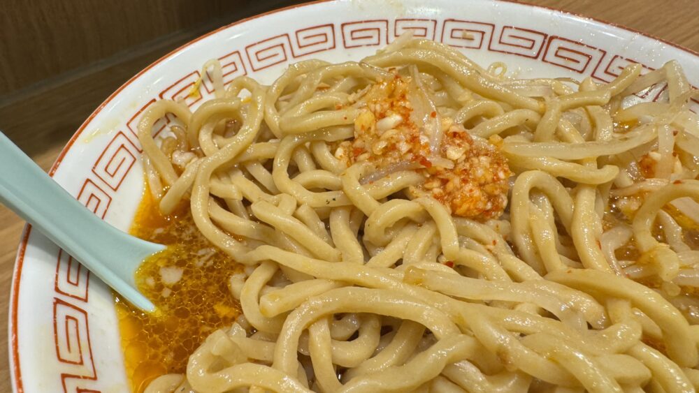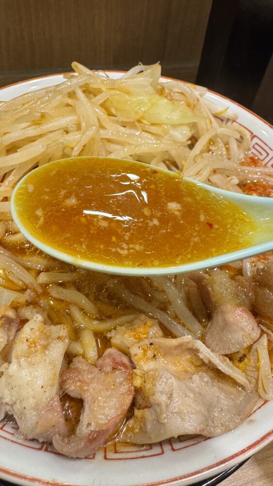 ▲スープは非乳化の醤油がベースですが、辛味が効いてピリ辛。