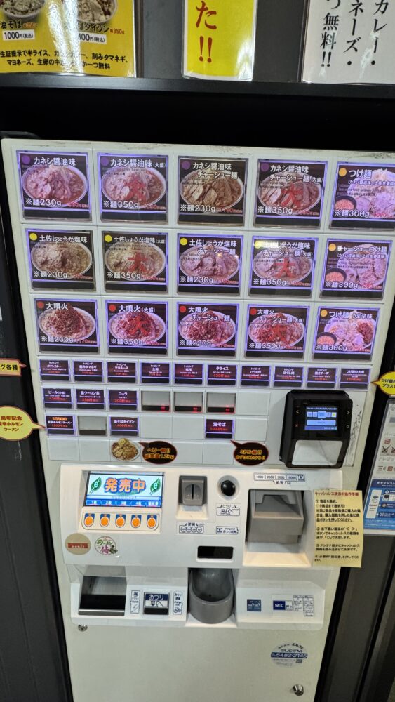▲外の券売機で注文します。複数のキャッシュレス決済対応なのが嬉しいです。