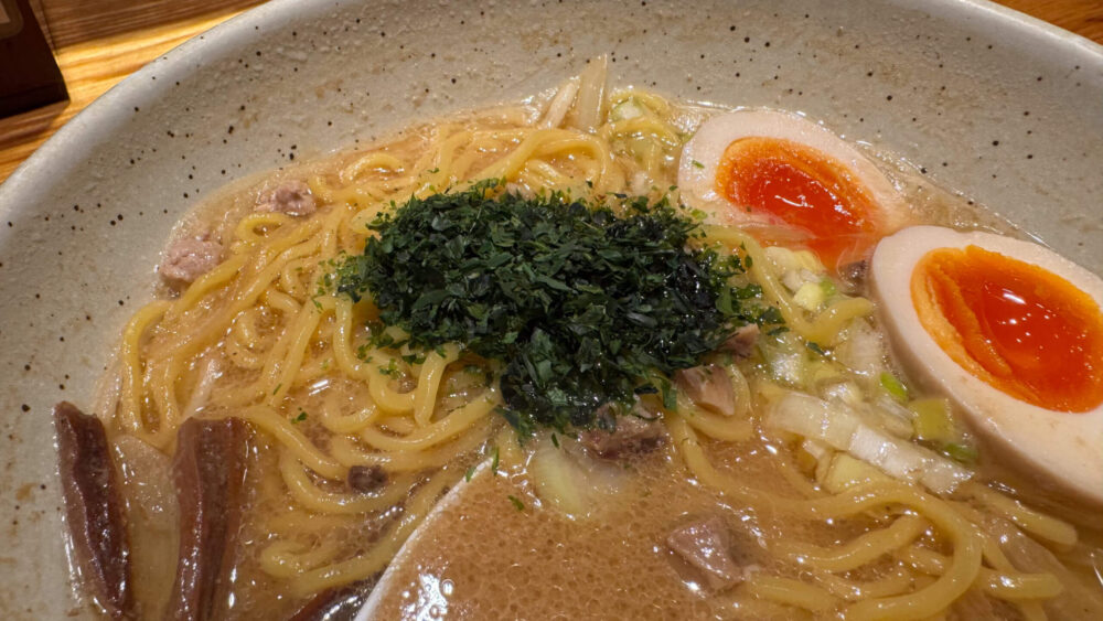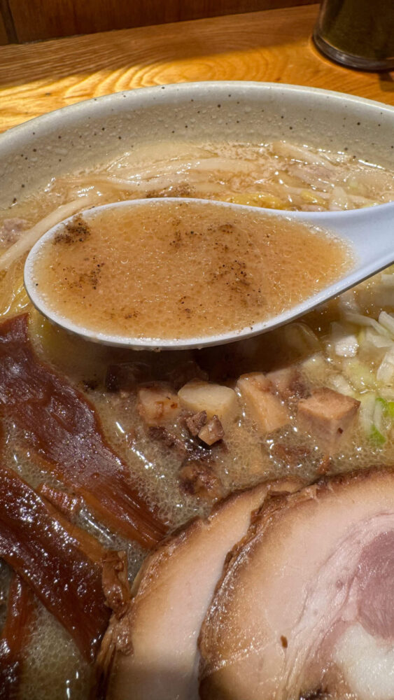 ▲スープは白味噌ベースで甘めな味わい。前回のバリ味噌よりもやさしめ。