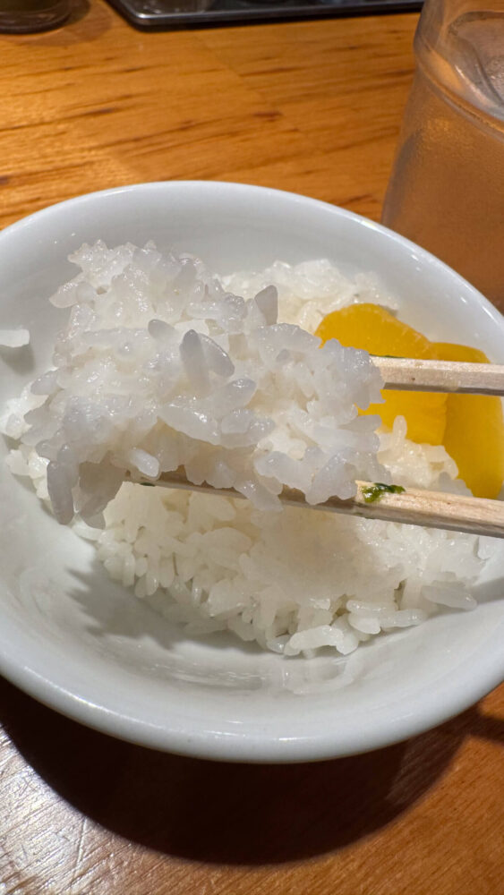 ▲合間にライスも食べ進めています。添えられたたくあんが嬉しい。