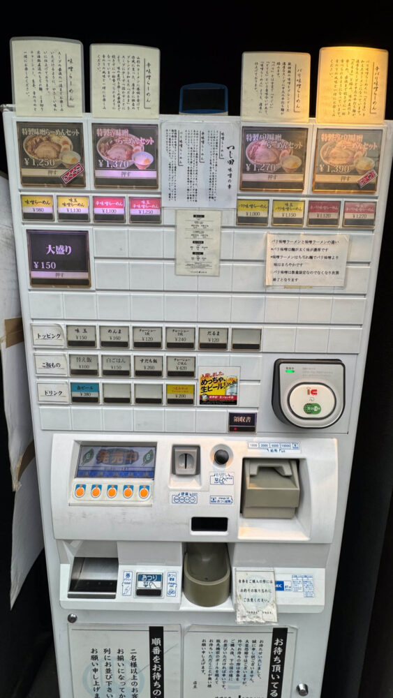 ▲店外の食券機で注文します。交通系電子マネーに対応しているのが嬉しい。