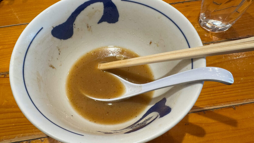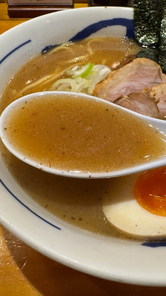 ▲とろみのある濃厚な豚骨魚介スープ。ぐびぐびと飲みたくなるやつ。