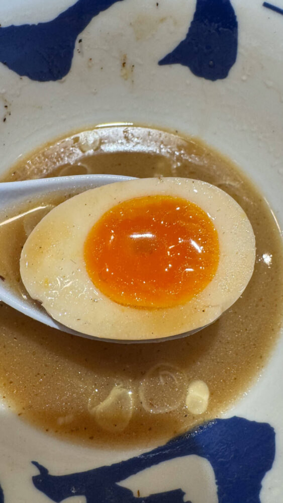 ▲味玉は半熟。スープといっしょに味わうと最高。