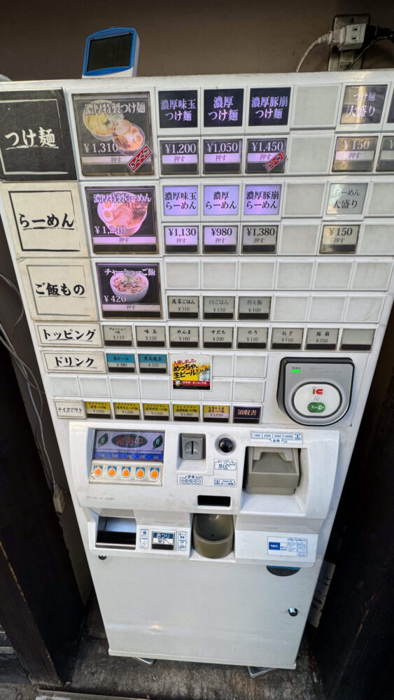 ▲店外の食券機で注文します。交通系電子マネーに対応しているのが嬉しい。