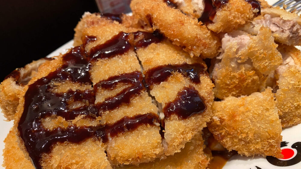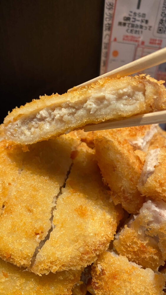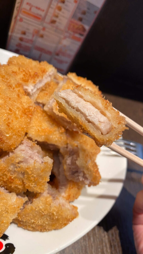▲トンカツは食べやすい一口サイズにカットされたもの。サクッと触感が良き。