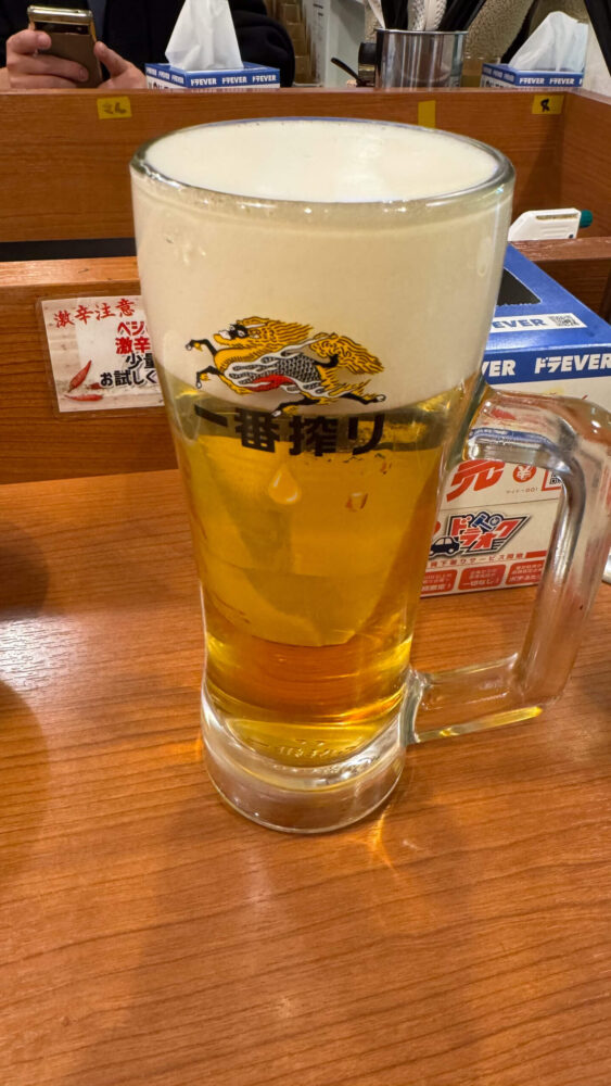 ▲最初に生ビール。仕事終わりのビールの旨さは悪魔的・・・!